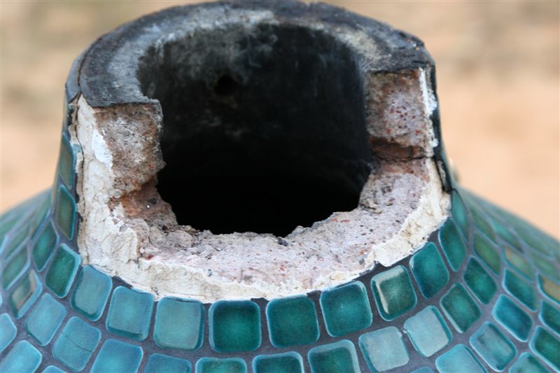 So this is what I cook with now... Giant hose clamp holding the neck together and a $1 planter dish as a damper... it works, but... damn!